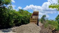 Dump Truk Turunkan Bahan Material Ke Titik Lokasi TMMD