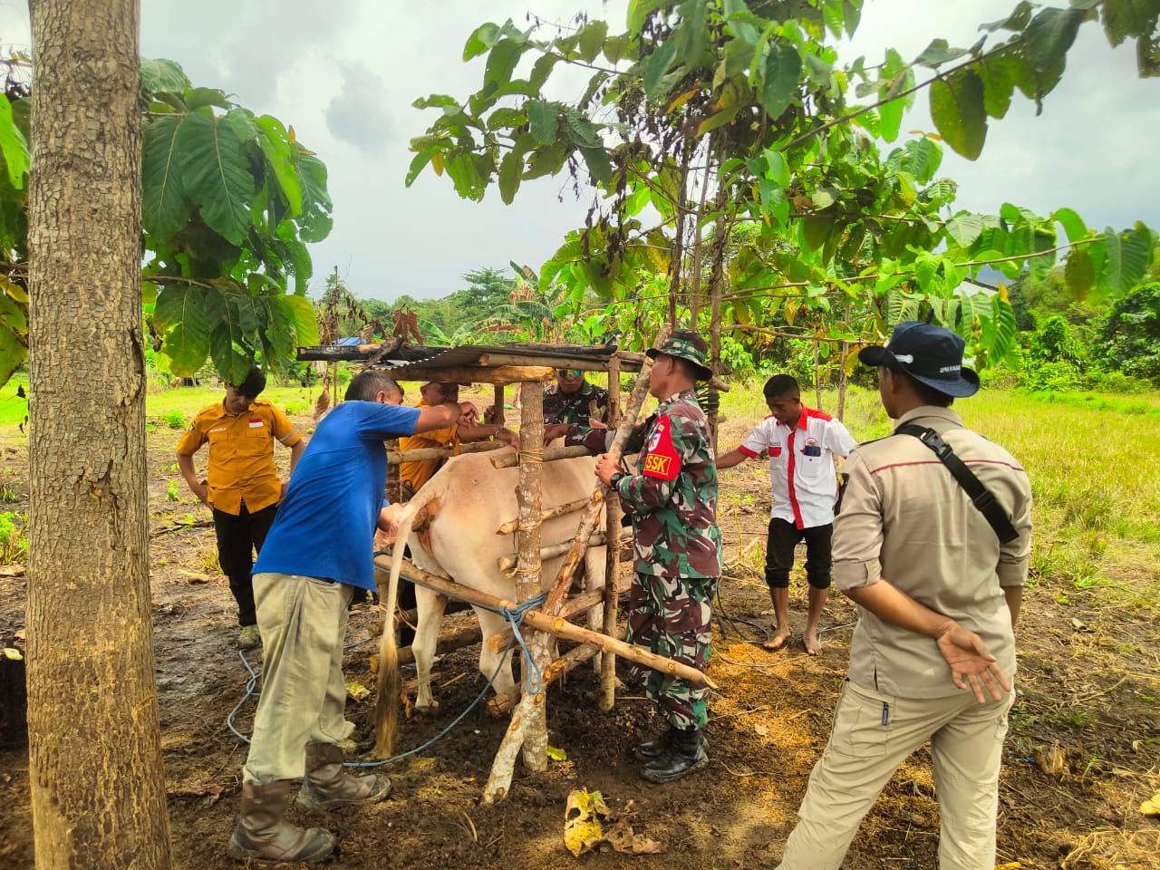 Gerbang Sulawesi _ Untuk mencegah penyakit menular kepada hewan ternak, Satgas Tentara Manunggal Membangun Desa (TMMD) ke – 126 tahun 2025 bersama Dinas Peternakan (Disnak) Kabupaten Banggai melaksanakan vaksinasi Sapi milik warga Desa Siuna, Kecamatan Pagimana.