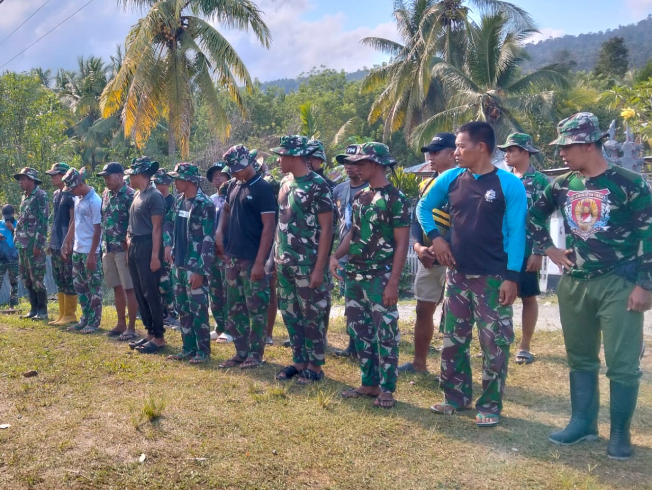 Gerbang Sulawesi _ Apel pagi setiap anggota TNI AD wajib dilaksanakan bagi setiap yang bertugas, baik di kantor, barak maupun di kesatuan selalu melakukan apel sebelum memulai aktivitas. Seperti yang dilakukan oleh personel Satgas TMMD ke- 126 di Desa Siuna, Kecamatan Pagimana, Minggu (12/10/2025) pagi.