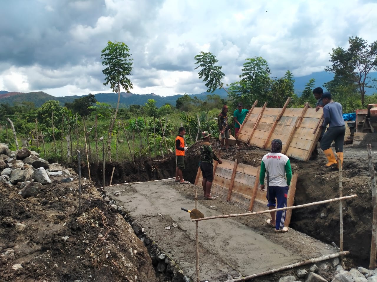 Para prajurit TNI bersama masyarakat setempat bahu-membahu melaksanakan pekerjaan, mempercepat penyelesaian agar target waktu pengerjaan dapat segera rampung sesuai jadwal. Semangat gotong royong ini menjadi kunci utama dalam mengatasi tantangan cuaca ekstrem di lapangan.