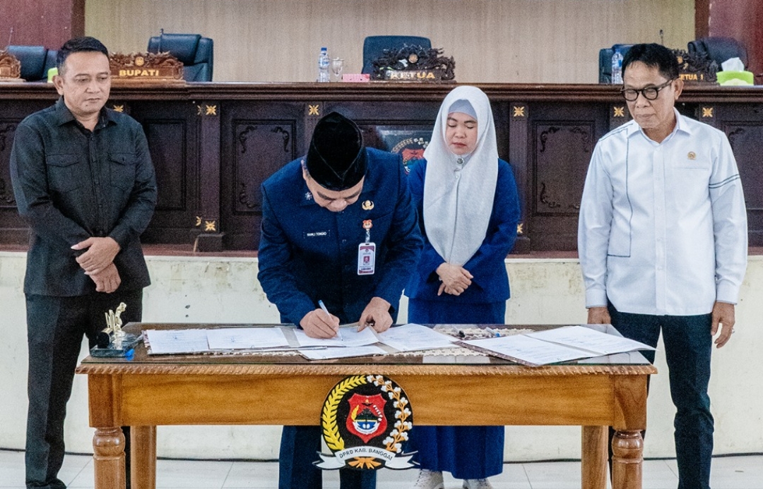 Nota Kesepakatan tersebut ditandatangani oleh Sekretaris Daerah Kabupaten Banggai, Ir. Ramli Tongko, S.Sos., S.Sos., M.Si., bersama Ketua DPRD Kabupaten Banggai, H. Sarifudin Tjatjo, S.H., serta Wakil Ketua I, Wardani Murad, dan Wakil Ketua II, I Putu Gumi.