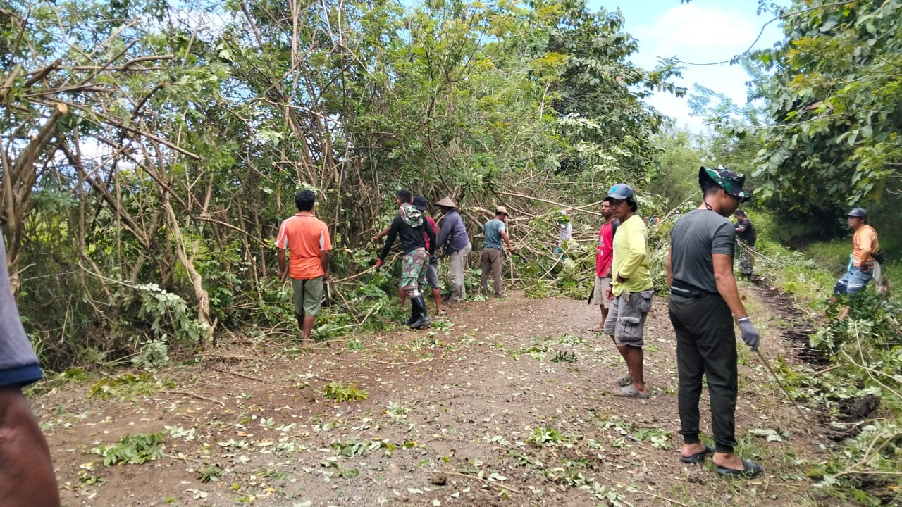“Ini hari kedua kami membersihkan pohon dan ranting di pinggiran jalan, kami senang bisa bisa bersama anggota TNI,” ungkap Tatu petani setempat.