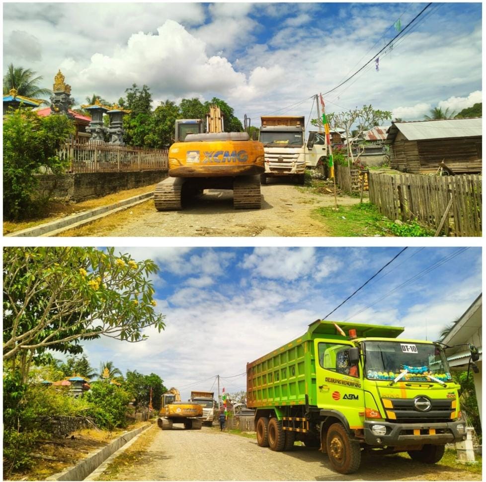“Kami terjunkan sejumlah alat berat termasuk Excavator Dan Damp Truck agar guna memaksimalkan pekerjaan sasaran terutama pada pembukaan jalan dihadapkan dengan kondisi medan yang berupa perbukitan dan pegunungan agar dapat selesai tepat waktu” pungkasnya.
